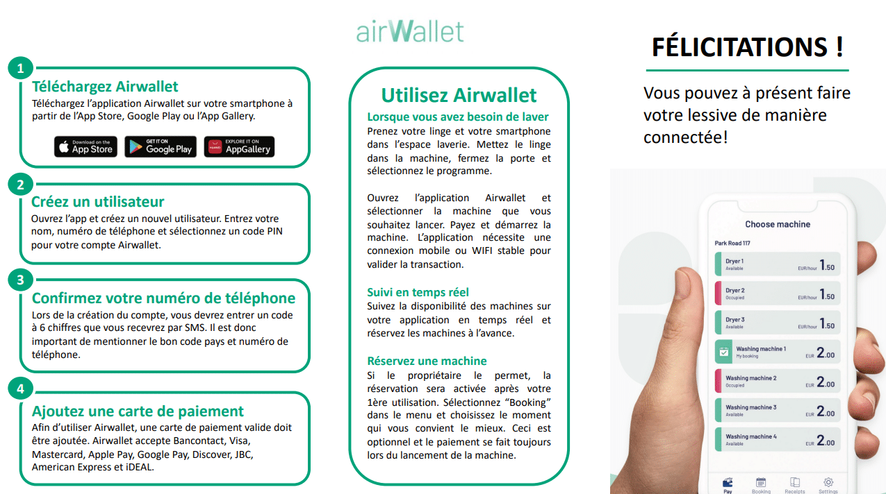 Pour mieux comprendre comment marche le service de laverie connectée proposé par AirWallet, voici un guide rapide et simple qui présente leur fonctionnement ainsi que leur application :